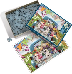 Das COBBLE HILL Puzzle Frühlingstransporter mit 500 Teilen ist ideal für Puzzle-Liebhaber, die nach mehr als nur einem Standard-Erlebnis suchen. Jedes Teil hat eine einzigartige Form, die dem Zusammensetzen einen zusätzlichen Spaßfaktor verleiht. Das Bild des Puzzles zeigt eine fröhliche ländliche Szene mit einem blauen Vintage-Transporter voller Frühlingsblumen, wodurch Elemente des Landlebens in Ihr Zuhause gebracht werden.