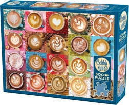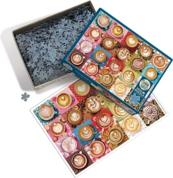 Erleben Sie das Flair eines Cafés bei Ihnen zu Hause. Das COBBLE HILL Puzzle Ich liebe dich, Latte bringt eine farbenfrohe Mosaik-Collage von Tassen mit feiner Latte-Art-Crema. Dank der einzigartigen Stanztechnik liegen Kanten und Ecken nicht auf einer Linie, was den Spaß- und Schwierigkeitsgrad erhöht und Verwechslungen der Teile verhindert.