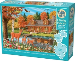 Das Familienpuzzle von COBBLE HILL ist so gestaltet, dass alle Freude am Puzzeln haben – von den Kleinsten bis zu den Erwachsenen. Das Motiv des idyllischen Teichs am Landhaus vermittelt eine ruhige Atmosphäre und bietet schöne Details, die es zu entdecken gilt. Die Aufteilung des Puzzles in Zonen mit unterschiedlichen Teilgrößen ermöglicht ein bequemes Nebeneinander-Puzzeln.