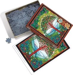 Die Puzzles von COBBLE HILL aus der Easy Handling Kollektion bieten dank Teilen mit einer durchschnittlichen Größe von etwa 3 cm ein komfortables Puzzleerlebnis. Das Motiv des Buntglas-„Baums des Lebens“ besticht durch satte Farben und detailreiche Zeichnung, was sowohl Anfänger als auch erfahrene Puzzler erfreut. Im Lieferumfang enthalten ist außerdem eine praktische Vorlage in der Größe 31,6 × 22,9 cm für eine leichtere Orientierung.