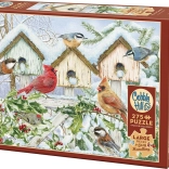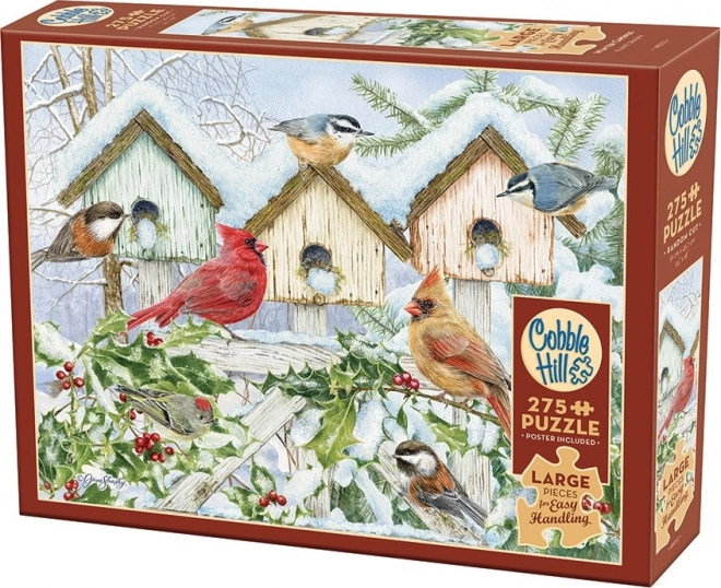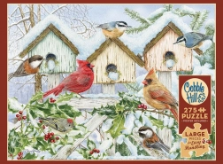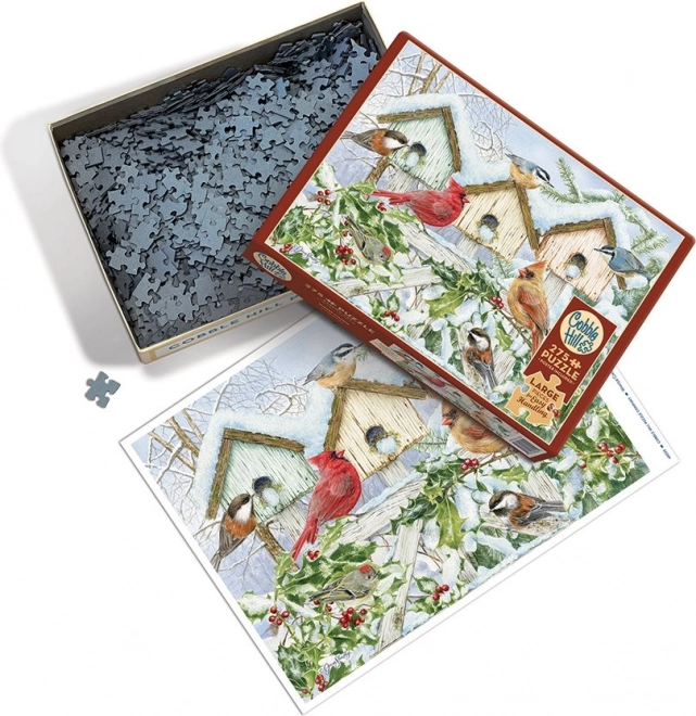 Dieses schöne Winterpuzzle mit Vogelhäuschen und Singvögeln bietet Entspannung und eine angenehme Herausforderung. Die Teile mit einer durchschnittlichen Größe von ca. 3 cm liegen gut in der Hand, rutschen nicht und sorgen dank der einzigartigen COBBLE-HILL-Stanzung für ein flüssiges, unterhaltsames Erlebnis ohne stereotype Gitterstruktur.