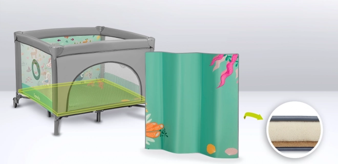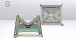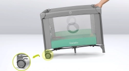 Der Laufstall enthält eine bequeme T25-Schaummatratze mit unterschiedlichen 3D-Oberflächen und ein LockGuard-System, das ein unbeabsichtigtes Zusammenklappen verhindert. Für eine einfache Mobilität hat der Laufstall 2 Räder mit Bremse und eine praktische Transporttasche für bequemes Tragen.