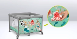 Der Laufstall hat einen seitlichen Eingang mit Reißverschluss, der einen einfachen Zugang gewährleistet, und seine luftigen und transparenten Wände ermöglichen eine einfache Beobachtung des Kindes. Der erhöhte Boden bietet bessere Belüftung und schützt vor Kälte vom Boden. Zudem enthält die Konstruktion keine scharfen Kanten, was sichere Versuche des Kindes bei den ersten Schritten unterstützt.