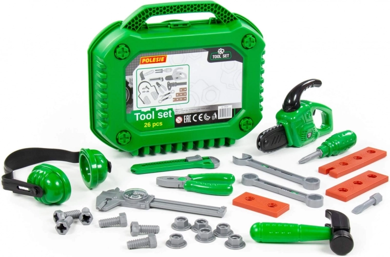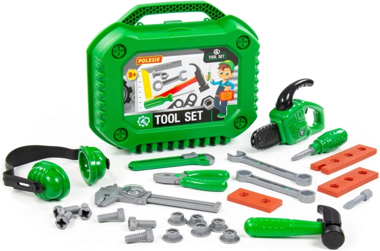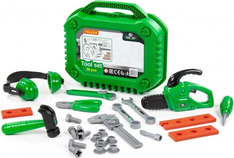 Die Werkzeugsets des Herstellers Polesie sind sowohl für Gruppenspiele in Vorschuleinrichtungen als auch für das individuelle Spiel des Kindes vorgesehen. Alle im Set enthaltenen Elemente sind funktional mit echten Werkzeugen identisch und fördern die Feinmotorik sowie die Bewegungskoordination des Kindes. Diese Sets helfen Kindern, sich mit den grundlegenden Interaktionen der einzelnen Teile vertraut zu machen und fördern so auch das räumliche Vorstellungsvermögen.