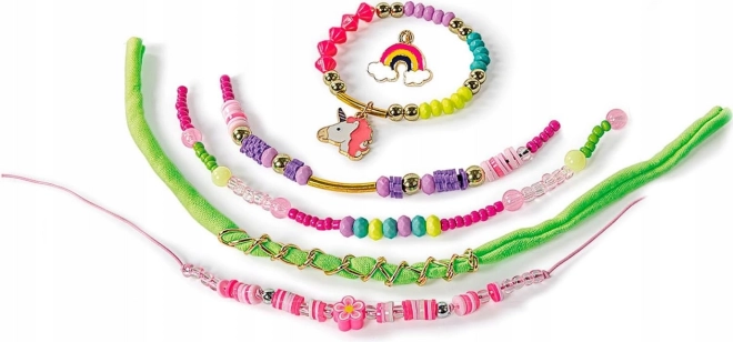 Ein Set für kleine Designerinnen, die Farben, Glitzer und die magische Welt der Einhörner lieben. Dank elastischer Schnüre und variabler Perlen entstehen im Handumdrehen originelle Armbänder für dich und deine Freundinnen. Einhorn- und Regenbogen-Anhänger verleihen jedem Schmuckstück einen märchenhaften Touch.