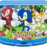 Verziert mit den Figuren Sonic, Knuckles und Tails vor einem fröhlichen Hintergrund wird diese Brotdose jeden Sonic-Fan ansprechen.