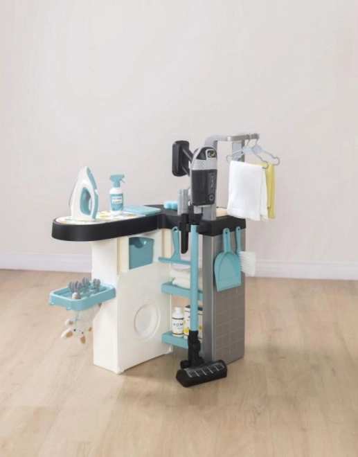 Entdecken Sie die multifunktionale Kinderwäscherei mit Bügeleisen und einer Nachbildung des Rowenta X Force Flex Staubsaugers. Dieses Set umfasst 17 realistische Zubehörteile, die die Fantasie anregen und die Fähigkeiten der Kinder verbessern.