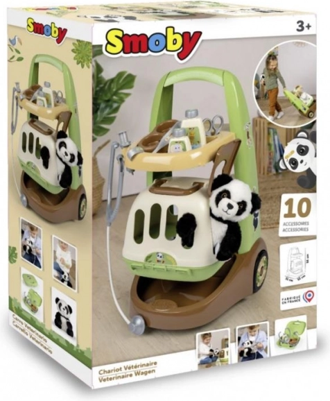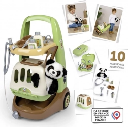 Der Smoby Tierarztwagen mit Panda bietet Kindern ab 3 Jahren ein authentisches Tierarzt-Rollenspiel. Dank der cleveren 2-in-1-Lösung dient die praktische Box sowohl als Transportbox für Tiere als auch als separater fahrbarer Arztkoffer. Der Wagen verfügt über leicht laufende Räder, lässt sich daher auch von jüngeren Kindern leicht steuern und bietet zugleich reichlich Platz zur Aufbewahrung der gesamten Ausrüstung.