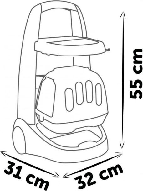 Transportbox für Tiere und abnehmbarer Arztkoffer in einem. Leichte und stabile Konstruktion mit leicht laufenden Rädern für einfaches Steuern auch durch jüngere Kinder.
