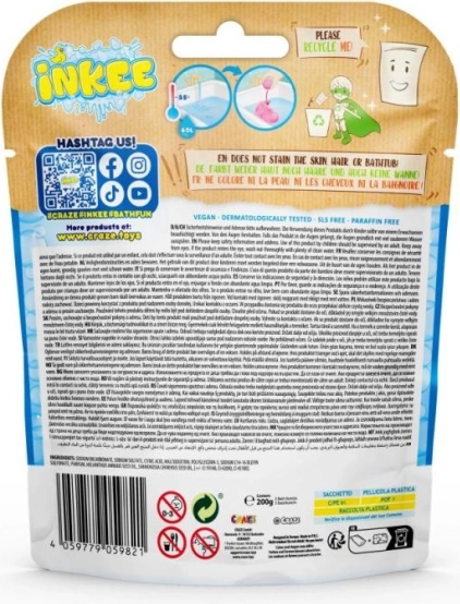 INKEE Produkte sind mit Blick auf Kinder und Natur entwickelt – sie sind vegan, ohne Mikroplastik, ohne SLS, ohne Paraffin und geeignet für Kinder ab 3 Jahren. Verpackt in einem praktischen Beutel mit Sichtfenster für die einfache Farbauswahl.