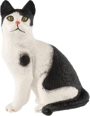 Feine Fellstruktur, präzise Proportionen und schwarz-weiße Färbung wirken authentisch – die Figur sieht aus wie eine echte sitzende Katze.