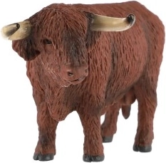 Die Figur hat eine realistische Textur, die das dichte Fell und die charakteristischen Hörner des schottischen Hochlandrinds nachbildet.