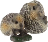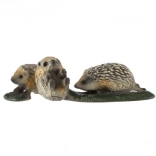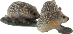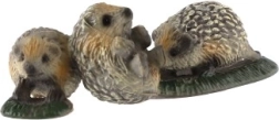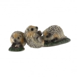 Diese kleine Dekoration zeigt eine Igelmutter mit ihren Jungen auf einem grünen Sockel, der an eine Wiese erinnert. Sie wirkt natürlich dank sorgfältig ausgearbeiteter Details der Stacheln, Schnäuzchen und Pfoten. Ideal für das Regal, die Fensterbank, den Schreibtisch oder die Kinderecke.