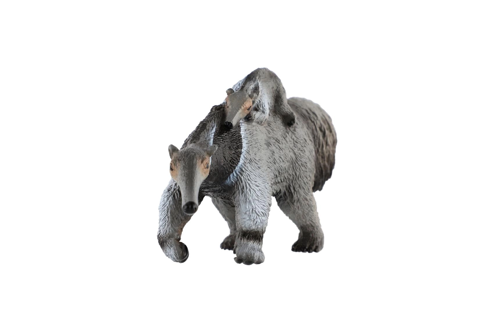 Die detaillierte Fellstruktur, die lange Schnauze und der buschige Schwanz bilden das Erscheinungsbild des Großen Ameisenbären mit Jungtier naturgetreu ab. Ideal für Sammler und kleine Zoologen.