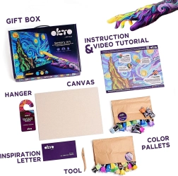 Holen Sie sich den Zauber des Gemäldes Sternennacht von Vincent van Gogh nach Hause und erschaffen Sie Ihr eigenes einzigartiges Bild. Das Set nutzt Air Clay (selbsthärtende Modelliermasse), die dem Ergebnis einen plastischen 3D-Effekt verleiht. Finger-Malen ist intuitiv, macht Spaß und entspannt – geeignet für Kinder und Erwachsene.