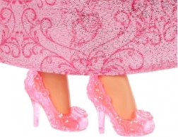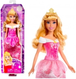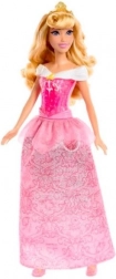 Die Puppe trägt ein rosa Kleid mit glitzernden Details und Verzierungen, die Auroras Filmauftritt nachahmen.