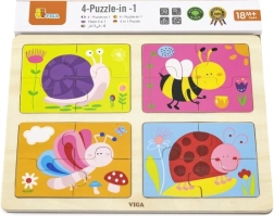 Das Set enthält vier separate Puzzles mit bunten Tierillustrationen, die für Kinder geeignet sind. Jedes Bild besteht aus vier Teilen, insgesamt sind es 16 Teile. Die Puzzles sind für Kinder ab 18 Monaten geeignet und fördern ihre Feinmotorik, ihr logisches Denken und die Kreativität.