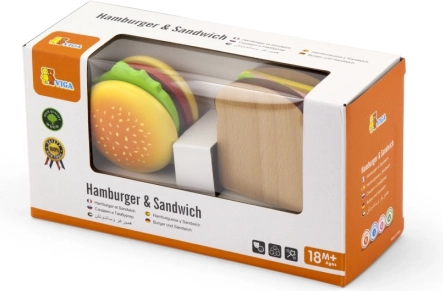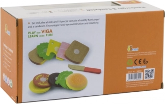 Dieses VIGA Holzspielzeug-Set aus Hamburger und Sandwich ist ideal für kleine Kinder, die gerne Erwachsene beim Kochen nachahmen. Bunte und sichere Holzkomponenten wie Brötchen, Salat, Tomaten und Käse ermöglichen unbegrenztes Spiel und Kreativität. Das Spielzeug hilft bei der Entwicklung von: