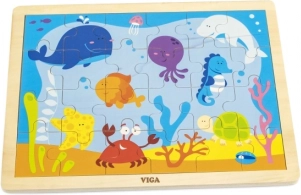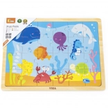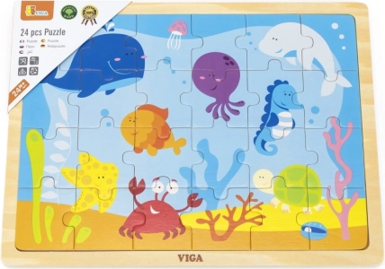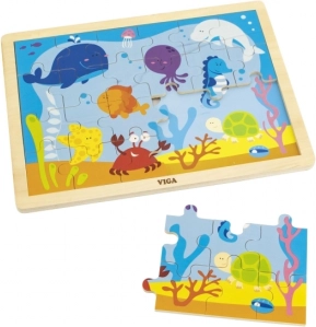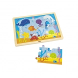 Das Holzpuzzle ist reich mit Meeresmotiven verziert, die die kindliche Vorstellungskraft anregen und ihre Aufmerksamkeit fesseln.