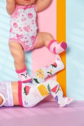 Erweitern Sie die Garderobe Ihrer BABY born Puppe mit diesen niedlichen Strumpfhosen und Socken, die nicht nur Wärme bieten, sondern auch modische Akzente setzen. Mit ihren pastellfarbenen Tönen sind sie das ideale Accessoire für jede kleine Mama.