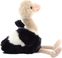 Beiger Hals und Beine in Kombination mit dem schwarz-weißen Körper erinnern naturgetreu an einen echten Strauß, den Kinder schnell ins Herz schließen.
