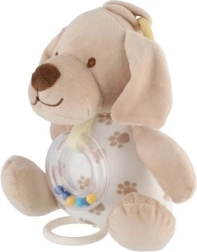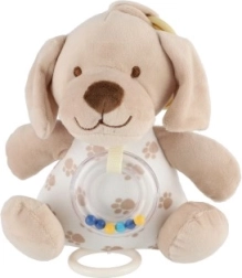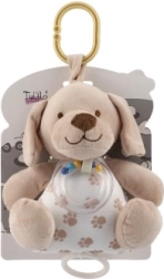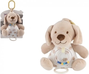 Die Spieluhr von TULILO besteht aus weichem Plüsch und Kunststoff, was Sicherheit und Komfort beim Spielen für Kleinkinder gewährleistet. Dank der beigen Farbe des Hundes ist sie universell und passt in jedes Kinderzimmer.