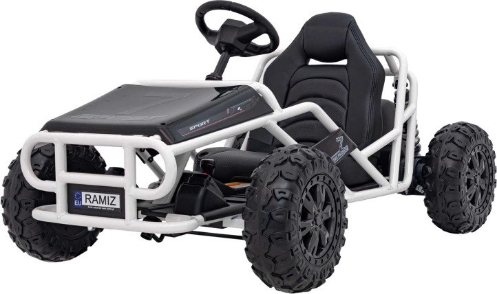 Das elektrische Fahrzeug RAMIZ Sport 5 ist für kleine Abenteurer gemacht, die das Fahren im Gelände lieben. Die starke Kombination aus 2×100 W Motoren und einem 24 V 10 Ah Akku bietet lange Ausdauer und reichlich Kraft, während der sanfte Start Kinder vor ruckartigen Anfahrten schützt.