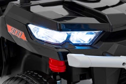 Sitz aus Eco-Leder, Sounds am Lenkrad, LED-Lichter und Multimedia-Panel MP3/USB/AUX/Bluetooth. Elterliche Aufsicht gewährleistet die 2,4-GHz-Fernbedienung mit STOP.