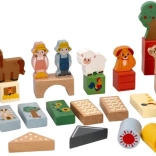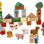 Jeder Baustein ist farbenfroh bemalt und zeigt Motive wie Tiere, Traktoren und Bauernhofgebäude, die das Spiel der Kinder zum Leben erwecken.