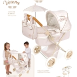 Eleganter klappbarer Puppenwagen aus der Verona-Kollektion in sanften Naturtönen bietet Kindern ein realistisches Eltern-Rollenspiel. Er verfügt über ein klappbares Verdeck, einen Sonnenschirm, eine abnehmbare Tasche und einen Ablagekorb. Dank des leichten Rahmens und der Griffhöhe von 60 cm lässt er sich auch von jüngeren Kindern hervorragend manövrieren. Hochwertiges spanisches Design und präzise Verarbeitung garantieren eine lange Lebensdauer.