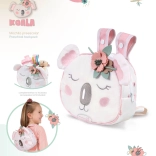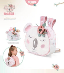 Suchen Sie den ersten Rucksack für Ihr Kind, der hübsch und praktisch ist? Dieser rosa-weiße Rucksack mit Motiv einer schlafenden Koala mit Blümchen hat kompakte Maße, eine angenehme textile Oberfläche und ein leichtes Reißverschluss-Schließen. Dank der verstellbaren Schultergurte bietet er Kindern ab 3 Jahren bequemen Tragekomfort.
