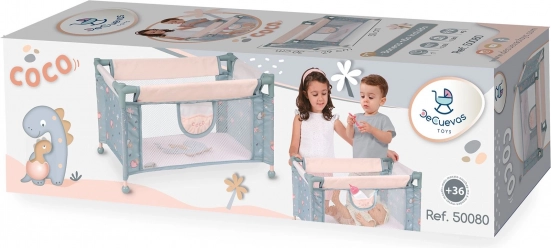 Das COCO Reisebett für Puppen ist eine schöne Ergänzung fürs Kinderzimmer und ein praktischer Begleiter für unterwegs. Dank des stabilen Rahmens aus Metall und Kunststoff sowie Stoffseiten mit Netz ist es leicht, sicher und gut belüftet. Das dezente graublaue Design mit dem süßen Dinosaurierbaby passt zu den weiteren Accessoires der Kollektion.