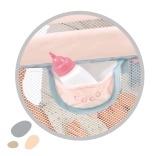 Das Bett lässt sich blitzschnell zu einem kleinen Paket zusammenlegen, nimmt kaum Platz ein und kann von Kindern überallhin mitgenommen werden. Die praktische Seitentasche hält Fläschchen, Schnuller oder andere Puppenutensilien stets griffbereit.