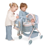 Der praktische Unterkorb fasst alle Puppen-Utensilien und die weiche Matratze sorgt für Komfort während der Fahrt.