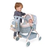 Entdecken Sie den ersten Puppenwagen, der speziell für die Kleinsten entwickelt wurde. Dank niedrigem Griff, leichtem Rahmen und sanfter Lenkung fährt er sich drinnen wie draußen mühelos. Das COCO-Design in zartem Grau-Blau mit sandfarbenen und rosigen Akzenten wird von einem verspielten Motiv einer Dino-Mama mit Baby ergänzt.
