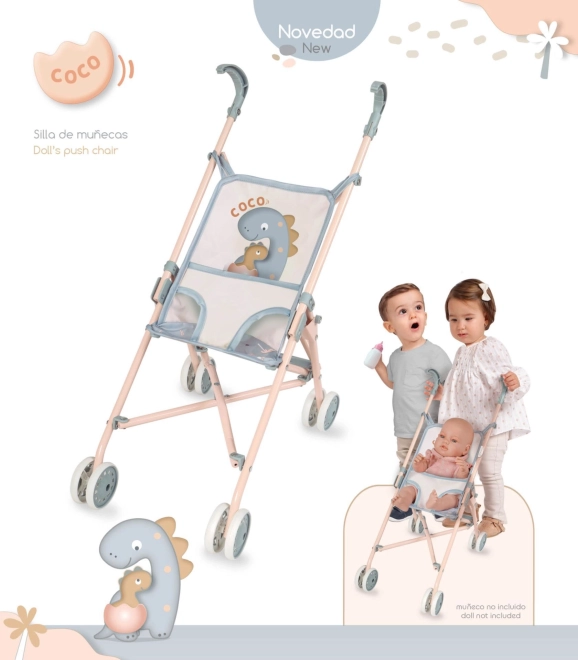 Der verspielte Puppenwagen mit niedlichem Dinosauriermotiv aus der COCO-Kollektion überzeugt durch geringes Gewicht und kompakte Maße, wodurch er sich leicht tragen und verstauen lässt. Mit einer Griffhöhe von 56 cm ist er für kleinere Kinder angenehm zu bedienen und ein toller Begleiter für den Alltag.