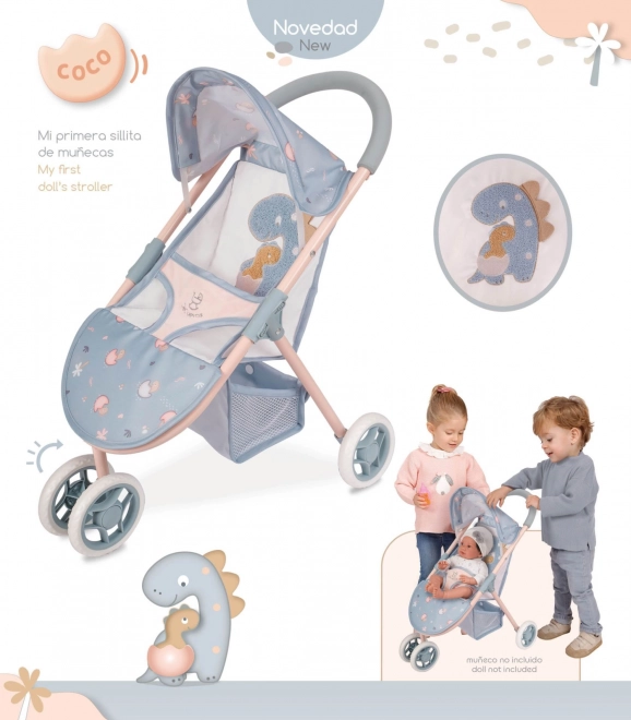 Entdecken Sie den niedlichen Sport-Puppenwagen mit dem Motiv einer Dino-Mama und ihres Babys aus der COCO 2024-Kollektion. Er verbindet spanisches Design, hochwertige Verarbeitung und geringes Gewicht für eine komfortable Bedienung selbst durch die Kleinsten. Dank der robusten Kombination aus Metall, Kunststoff und Textil hält er dem täglichen Spiel stand.