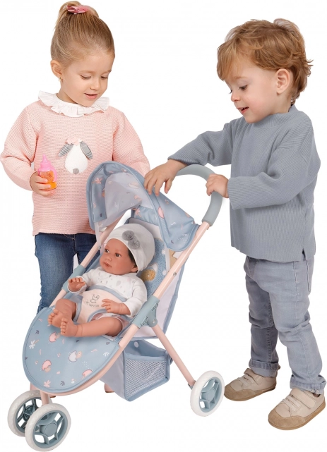Das schwenkbare vordere Zwillingsrad erleichtert das Lenken, der untere Korb bietet praktischen Stauraum und der 3-Punkt-Gurt sichert die Puppe bis zu einer Größe von 46 cm zuverlässig. Die kompakten Maße von 55 × 48 × 33 cm (H × T × B) sorgen für einfachen Transport und platzsparende Aufbewahrung.
