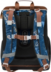 Der Ranzen ist mit einem verstärkten Korpus und ergonomisch geformten Rücken für bequemes Tragen ausgestattet. Das verstellbare Rückensystem ermöglicht eine optimale Einstellung.