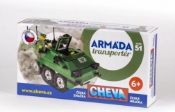 Mit dem Baukasten Cheva 51 Transporter tauchen Kinder in die Welt der Panzergefechte ein. Dank der vier Achsen bewegt er sich mühelos auch in anspruchsvollem Gelände.