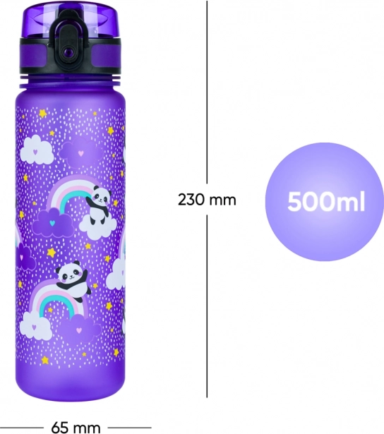 Die elegante Tritanflasche mit einem Fassungsvermögen von 500 ml begeistert nicht nur durch ihr Design, sondern auch durch ihre Funktionalität. Hergestellt aus zertifiziertem Tritan, gibt sie keinen unangenehmen Geruch ab und enthält keine gesundheitsgefährdenden Stoffe wie BPA, PVC und Phthalate. Dank des integrierten Siebs können Sie sie für Limonaden mit Obst oder Tees verwenden, wobei das Material auch für heiße Getränke geeignet ist. Das elegante Panda- und Regenbogenmotiv macht diese Flasche zu einem großartigen Accessoire für Kinder.