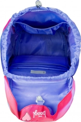 Der Rucksack verfügt über eine einfache Inneneinteilung mit einem Fach für Ordner und die Fronttasche mit Reißverschluss ist ideal für die sichere Aufbewahrung der Brotdose, während die seitlichen Taschen mit elastischem Band die Flaschen vor dem Herausfallen schützen. Der magnetische Verschluss erleichtert das Handling auch für die kleinsten Kinder.