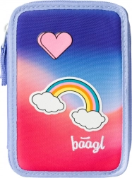 Genießen Sie perfekte Übersicht in drei Etagen – dieses BAAGL-Schul-Federmäppchen fasst alles von Bunt- und Filzstiften bis hin zu Linealen und Radiergummi. Das robuste Textilmaterial mit Regenbogenmotiv und Herz erfreut auf den ersten Blick, während hochwertige Reißverschlüsse und ein verstärkter Rückenbereich ein komfortables Öffnen und langlebige Alltagstauglichkeit gewährleisten.