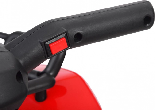Das Quad fährt los, wenn der rote Knopf am Griff gedrückt wird. Kinder lernen die Bedienung schnell und genießen sicheren Fahrspaß.
