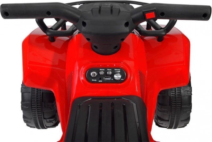 Dieses sportliche Kinder-Quad wurde für die kleinsten Fahrer entwickelt. Dank der praktischen Abmessungen meistert es Fahrten auf ebenen Flächen in der Wohnung sowie draußen auf Gehwegen und Parkwegen. Die Bedienung ist kinderleicht – das Quad fährt los, wenn der rote Knopf am Griff gedrückt wird; auf dem Panel befinden sich Soundsteuerung und Hupe.