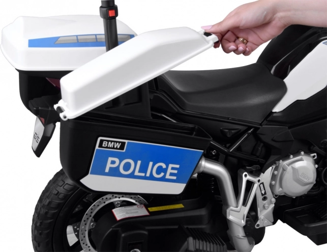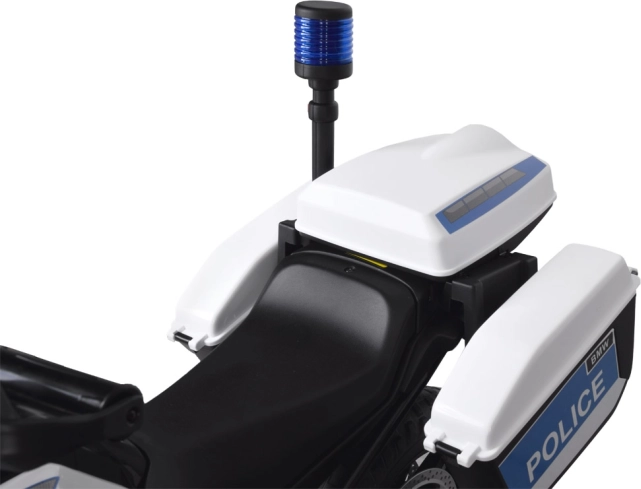 Großes BMW Polizei-Elektromotorrad mit Blaulicht und Satteltaschen ist die ideale Wahl für jeden kleinen Hüter des Gesetzes. Dieses Kindermotorrad, das einem echten Polizeimotorrad detailgetreu nachempfunden ist, begeistert jeden jungen Fahrer. Das Motorrad ist mit einem starken Motor und Akku ausgestattet: