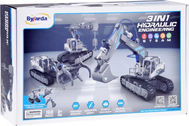 Bauen Sie drei verschiedene Baumaschinen und wechseln Sie je nach Laune. Ein Set, viele Spiel- und Lernmöglichkeiten.