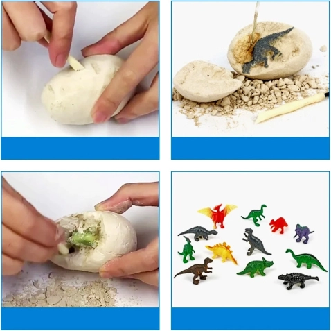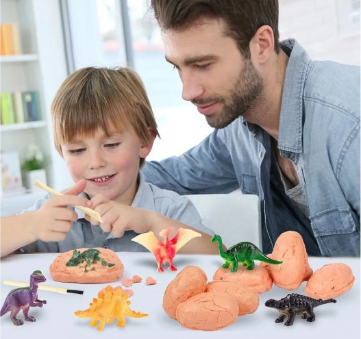 Jedes Gipsei verbirgt eine andere Dinosaurierart. Kinder genießen die Spannung des Entdeckens und können ihre eigene Sammlung prähistorischer Wesen zusammenstellen.