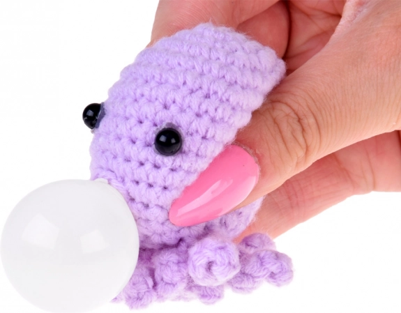 Im Paket finden Sie sechs Knäuel in leuchtenden Farben, Ballons und Füllmaterial für einen weichen Körper, praktische Werkzeuge und Zubehör. Der fertige Squishy eignet sich als Geschenk, Dekoration oder als liebliches Handschmeichler-Spielzeug.