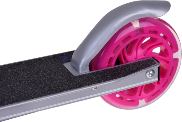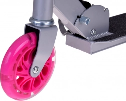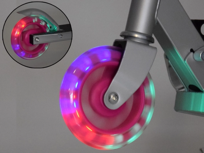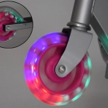 Dieser klappbare Kinderroller vereint geringes Gewicht, Stabilität und Sicherheit. Die Räder leuchten dank integrierter LEDs während der Fahrt ohne Batterien, was die Sichtbarkeit und Attraktivität erhöht. Die Alu-Stahl-Konstruktion ist robust und dennoch leicht zu transportieren – ideal für Park, Radweg oder Urlaub.